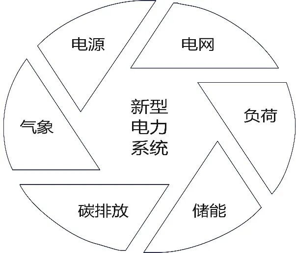 新型電力系統(tǒng)整合了電源、電網(wǎng)、負荷、儲能、碳排放和氣象六大要素,并通過復(fù)雜的交互機制形成協(xié)同互動的系統(tǒng)結(jié)構(gòu),系統(tǒng)通過多要素協(xié)同優(yōu)化,提升了可再生能源的利用效率、系統(tǒng)的調(diào)節(jié)靈活性以及運行的經(jīng)濟性。