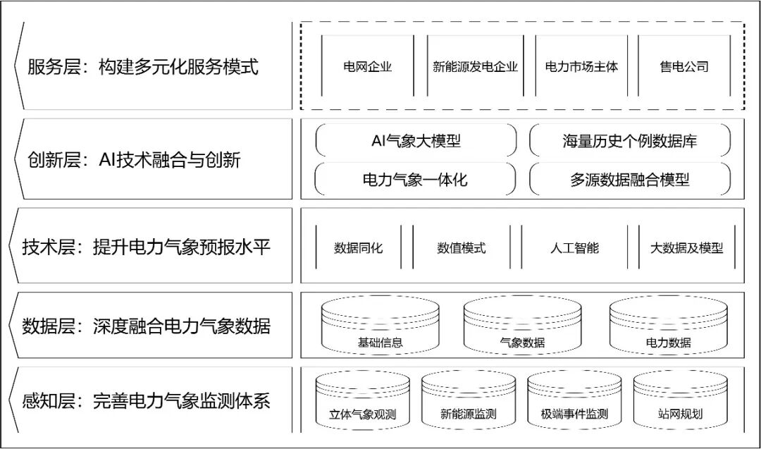 隨著新型電力系統(tǒng)的快速發(fā)展,電力氣象服務(wù)貫穿于電力系統(tǒng)規(guī)劃運行以及調(diào)度等環(huán)節(jié),是提升電力系統(tǒng)安全、效率和智能化水平的關(guān)鍵支撐。為了滿足實際電力業(yè)務(wù)的需求,電力氣象服務(wù)目前在電力氣象監(jiān)測、電力氣象災(zāi)害預(yù)警、電力負荷預(yù)測、新能源功率預(yù)測、電力市場交易等方向展開相關(guān)的應(yīng)用。但是由于電力氣象的研究和發(fā)展相對較晚,當(dāng)前電力氣象服務(wù)應(yīng)用仍然面臨著一定的問題和挑戰(zhàn),主要包括:電力氣象監(jiān)測能力不足,極端氣象預(yù)報準(zhǔn)確度有待提升,行業(yè)數(shù)據(jù)交叉應(yīng)用存在技術(shù)壁壘,電力氣象服務(wù)模式相對單一等。