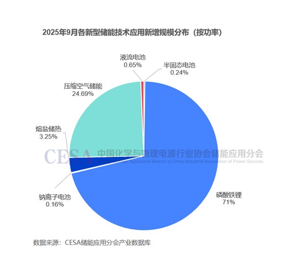 從儲(chǔ)能技術(shù)路線來(lái)看,9月新增投運(yùn)儲(chǔ)能項(xiàng)目中,磷酸鐵鋰電池儲(chǔ)能技術(shù)并網(wǎng)規(guī)模為2.19GW/5.2GWh,功率規(guī)模合計(jì)占比71%。