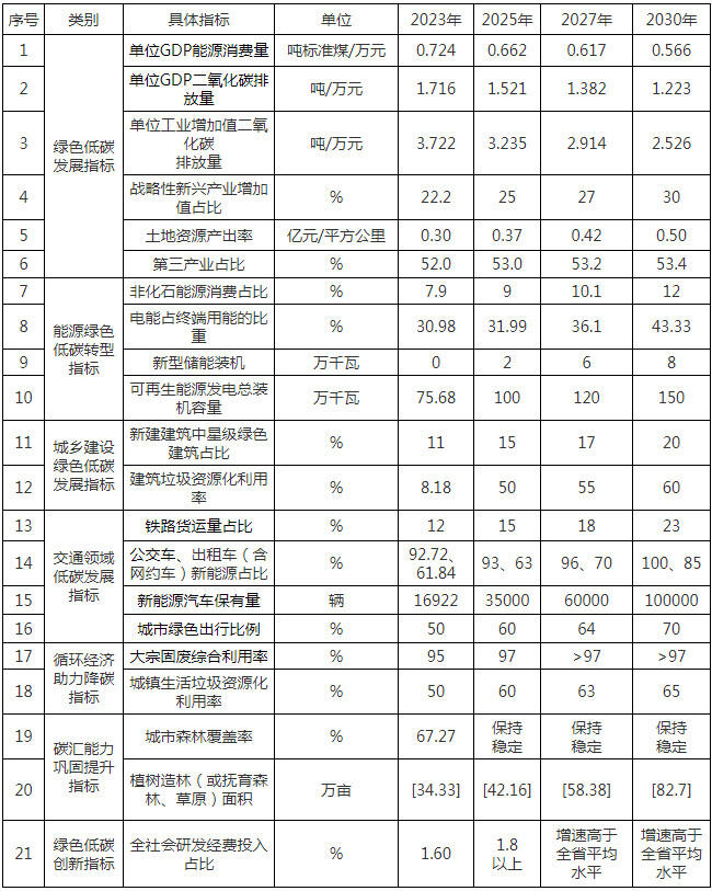 萍鄉(xiāng)市碳達峰試點城市建設目標指標表