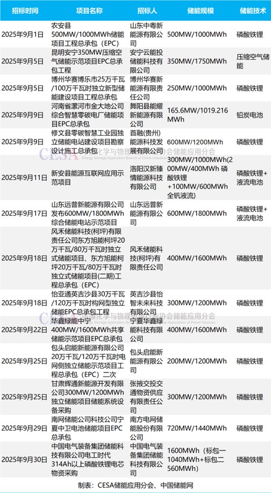 9月新增招標:新增規(guī)模43.6GWh,14個GWh級項目
