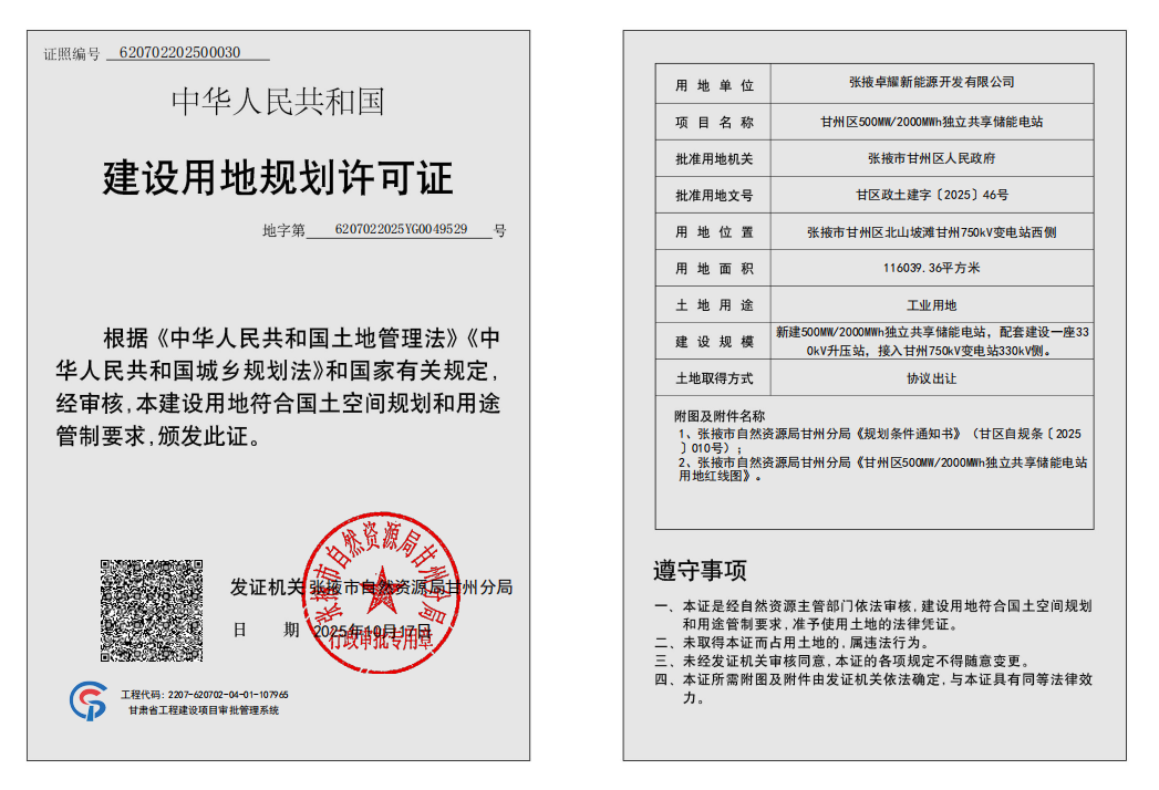 500MW/2000MWh!甘肅張掖甘州區(qū)獨立共享儲能電站公示