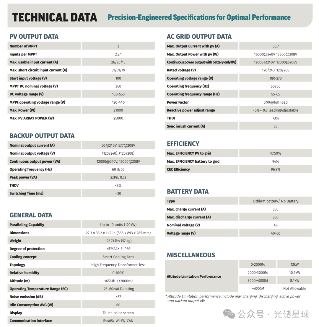連續(xù)備用輸出功率為12kW,并網(wǎng)輸出功率最高可達(dá)16kW。
