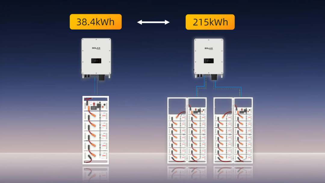 系統(tǒng)容量配置靈活,每個電池包容量為7.68kWh,儲能逆變器配備雙向電池連接器,滿足38.4kWh至215kWh單系統(tǒng)容量需求,精準(zhǔn)適配從中小型商鋪到高耗能工廠的用電需求。此外,逆變器支持最多10套系統(tǒng)并聯(lián),滿足49.9kW至600kW的并網(wǎng)功率需求,輕松應(yīng)對各類企業(yè)未來業(yè)務(wù)增長帶來的能源需求變化。