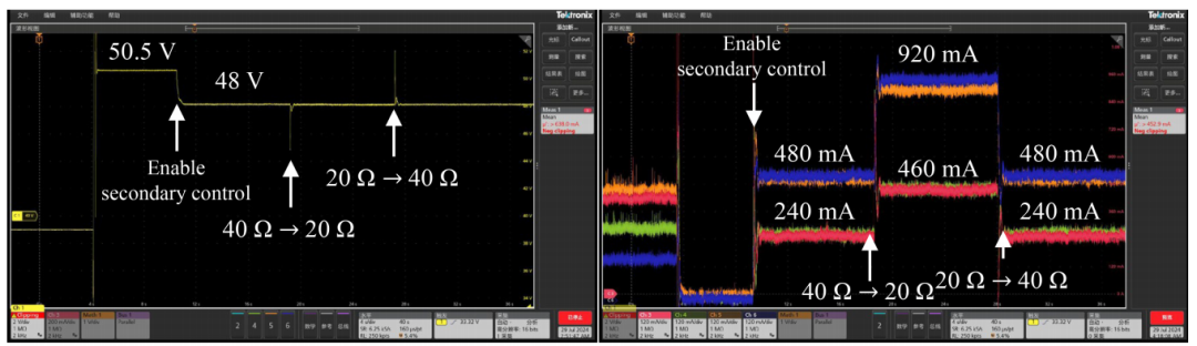 圖3 實驗測試的總線電壓與輸出電流響應(yīng)