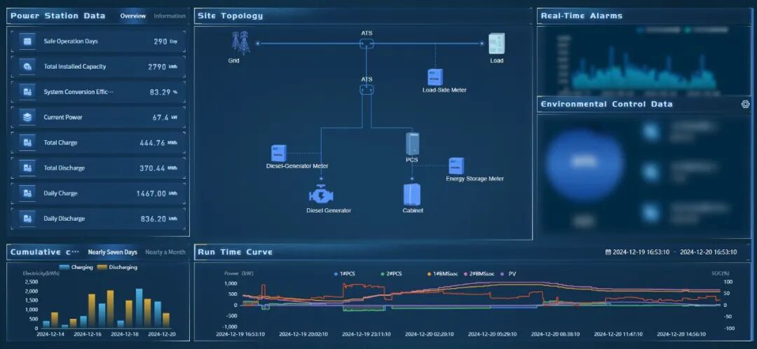 建筑工地的用電負(fù)載波動(dòng)大,傳統(tǒng)柴發(fā)機(jī)組常因“大馬拉小車(chē)”導(dǎo)致燃料浪費(fèi)。弘正EMS系統(tǒng)通過(guò)接入儲(chǔ)能、柴發(fā)與電表數(shù)據(jù),實(shí)時(shí)采集運(yùn)行信息,動(dòng)態(tài)調(diào)節(jié)系統(tǒng)狀態(tài)——負(fù)載低時(shí)優(yōu)先用儲(chǔ)能,負(fù)載高時(shí)柴發(fā)智能補(bǔ)能。通過(guò)系統(tǒng)精準(zhǔn)調(diào)度讓工地發(fā)電機(jī)運(yùn)行時(shí)長(zhǎng)大幅縮短,燃料消耗與運(yùn)維成本雙降,在兼顧經(jīng)濟(jì)性與穩(wěn)定性的同時(shí),為工地提供可靠電力保障。