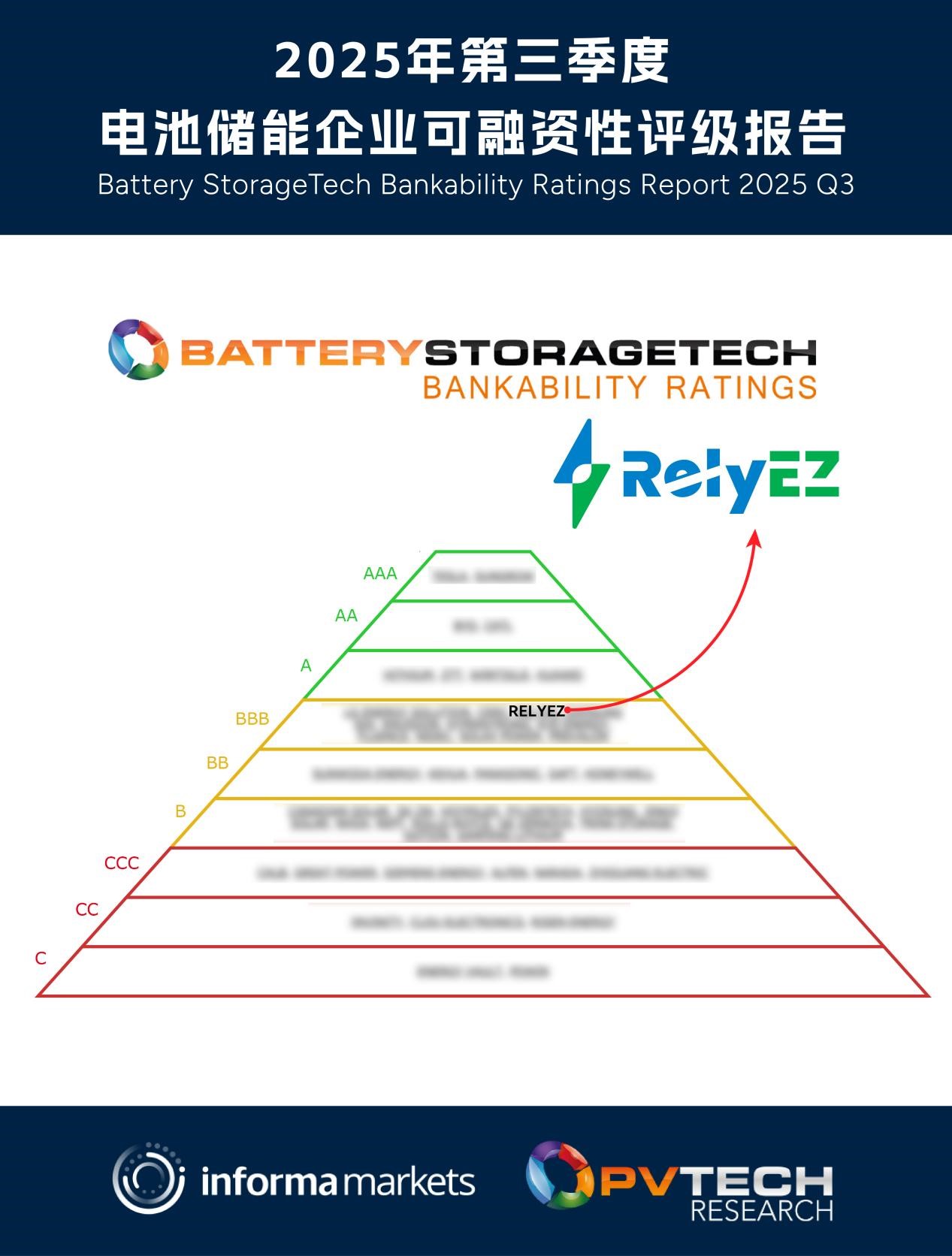 中國儲能網(wǎng)訊:近日,國際權(quán)威機(jī)構(gòu)Informa Markets正式發(fā)布《2025年第三季度儲能系統(tǒng)可融資性評級報(bào)告》。報(bào)告顯示,遠(yuǎn)信儲能(RelyEZ)蟬聯(lián)獲評BBB級,穩(wěn)居全球儲能企業(yè)高可融資性陣營,凸顯其在國際市場的持續(xù)競爭力與資產(chǎn)可信度。