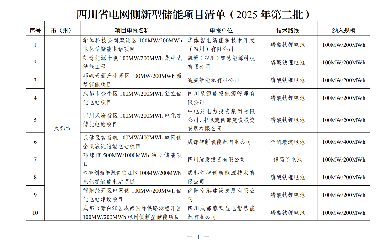 關(guān)于印發(fā)《四川省電網(wǎng)側(cè)新型儲(chǔ)能項(xiàng)目清單(2025年第二批)》的通知