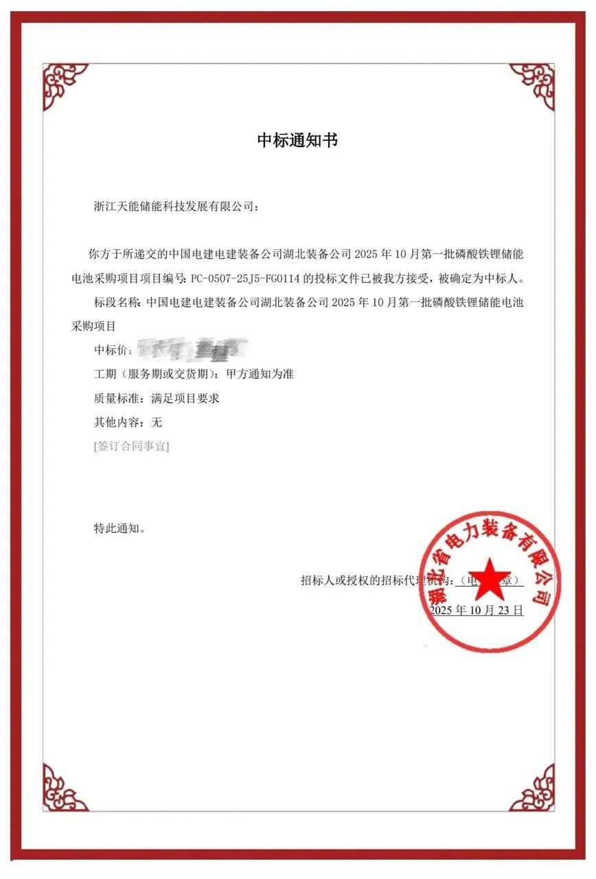 中國儲能網(wǎng)訊:近日,天能鋰電成功中標(biāo)中國電建130MWh儲能項(xiàng)目。此次合作由天能船舶業(yè)務(wù)線主導(dǎo),攜手中國電建湖北裝備公司,為其提供首批磷酸鐵鋰儲能電池。憑借此次中標(biāo),天能正式進(jìn)入中國電建供應(yīng)鏈體系,這不僅是公司在儲能領(lǐng)域的重要突破,更為進(jìn)一步開拓新能源市場奠定堅(jiān)實(shí)基礎(chǔ)。
