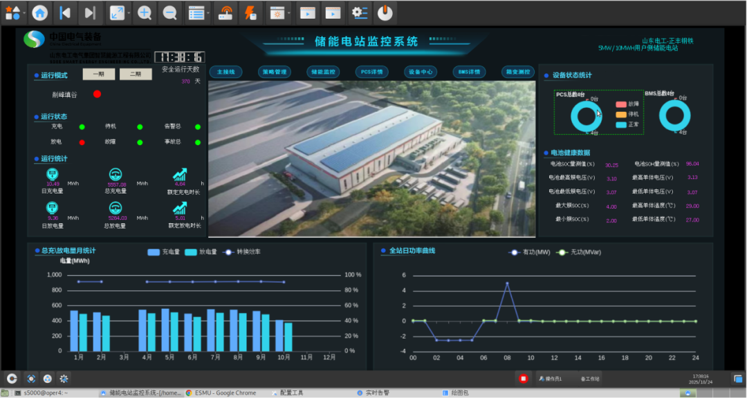 項(xiàng)目遵循廠區(qū)數(shù)字化與信息標(biāo)準(zhǔn)化架構(gòu),采用完全自主研發(fā)的儲能能量管理系統(tǒng)(EMS),集成運(yùn)行監(jiān)控、智能操作、綜合分析預(yù)警與精益運(yùn)營管理于一體,實(shí)現(xiàn)全站數(shù)據(jù)流的統(tǒng)一接入、集中存儲與全景可視化,為電站高效、安全運(yùn)行提供中樞智慧決策支持。
