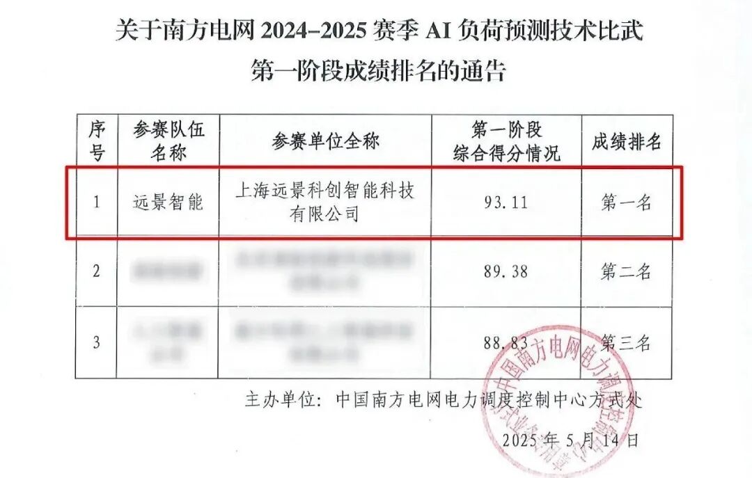 此前,在南方電網(wǎng)公布2024-2025賽季AI負(fù)荷預(yù)測(cè)技術(shù)比武第一階段,遠(yuǎn)景與近十家行業(yè)頭部企業(yè)及科研院所展開(kāi)為期1年的激烈角逐,最終拿下人工智能負(fù)荷預(yù)測(cè)與功率預(yù)測(cè)雙料冠軍,再次驗(yàn)證了遠(yuǎn)景卓越的AI能力。