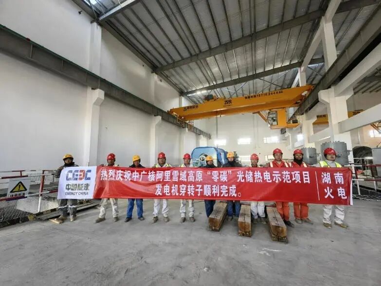 中國儲能網訊:10月25日,由中國能源建設集團湖南火電建設有限公司承建的西藏阿里“零碳”光儲熱電示范項目成功完成1、2號機組發(fā)電機穿裝轉子工作,標志著這一世界海拔最高的光伏儲熱發(fā)電項目進入核心設備安裝的關鍵階段。