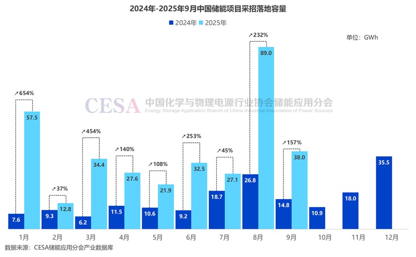 2025年1-9月,儲能EPC/PC(含直流側(cè)設(shè)備)采招落地54.47GW/146.98GWh,容量占同期儲能總需求的44.9%。