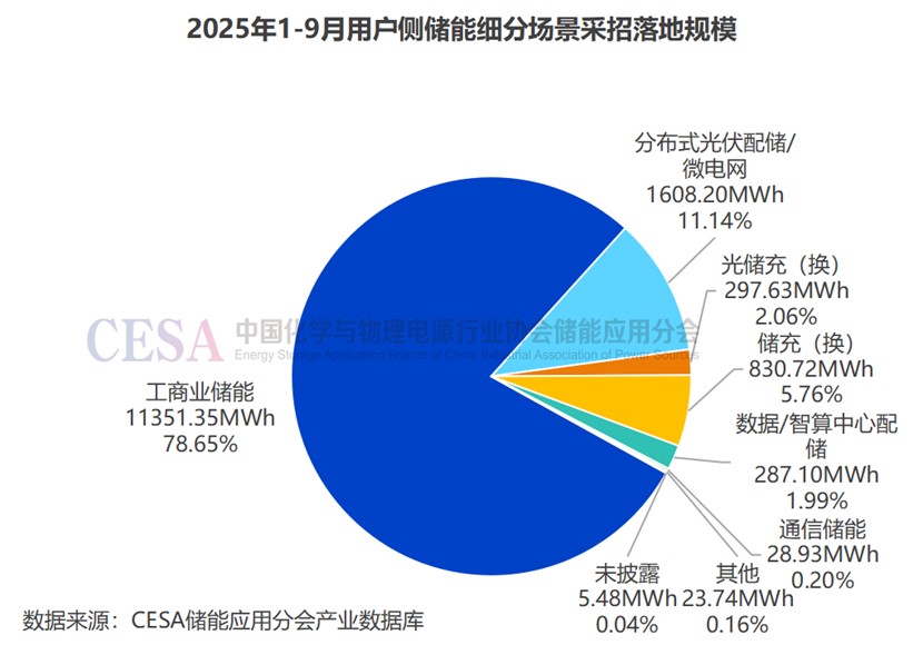 其他用戶側(cè)儲(chǔ)能項(xiàng)目(包括儲(chǔ)充、光儲(chǔ)充、分布式光伏配儲(chǔ)、微電網(wǎng)、通信儲(chǔ)能、數(shù)據(jù)/智算中心配儲(chǔ)、應(yīng)急電源、便攜式儲(chǔ)能、移動(dòng)儲(chǔ)能、船用儲(chǔ)能等)采招落地947.05MW/3076.33MWh,占比17.05%(功率)/21.31%(容量),儲(chǔ)能應(yīng)用逐漸向靈活多樣化場(chǎng)景延伸。