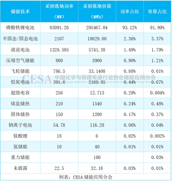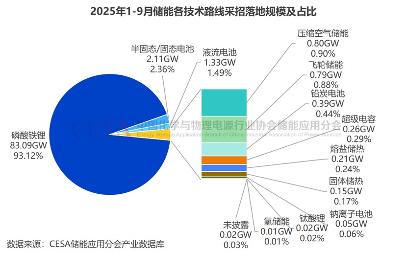 表 2025年1-9月各技術(shù)路線儲(chǔ)能采招落地規(guī)模及市場(chǎng)占比