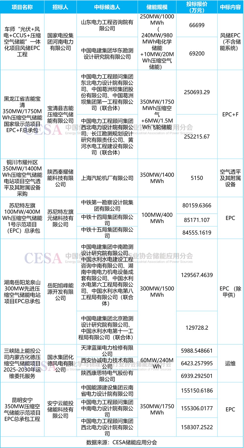 表 2025年1-9月壓縮空氣儲(chǔ)能采招落地項(xiàng)目