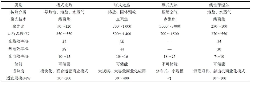 作為全球能源轉(zhuǎn)型和綠色發(fā)展的重要領(lǐng)域,太陽(yáng)能光熱技術(shù)在中國(guó)的發(fā)展經(jīng)歷了從初期探索到商業(yè)化應(yīng)用的過(guò)程,不同技術(shù)類(lèi)型的光熱分析對(duì)比情況如下表所示: