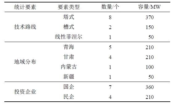 從技術(shù)路線來(lái)看,11個(gè)已建成項(xiàng)目中,包括塔式8個(gè)(含1個(gè)二次聚光塔式)、槽式2個(gè)、線性菲涅爾式1個(gè)(該項(xiàng)目是全球首個(gè)商業(yè)化熔鹽線性菲涅爾式項(xiàng)目)。從地域分布來(lái)看,11個(gè)已建成項(xiàng)目中,青海5個(gè)、甘肅4個(gè)、內(nèi)蒙古1個(gè)、新疆1個(gè)。從投資企業(yè)來(lái)看,11個(gè)已建成項(xiàng)目中,國(guó)企7個(gè)、民企4個(gè)。從上網(wǎng)電價(jià)看,11個(gè)項(xiàng)目的申報(bào)電價(jià)均在1.15~1.20元之間。