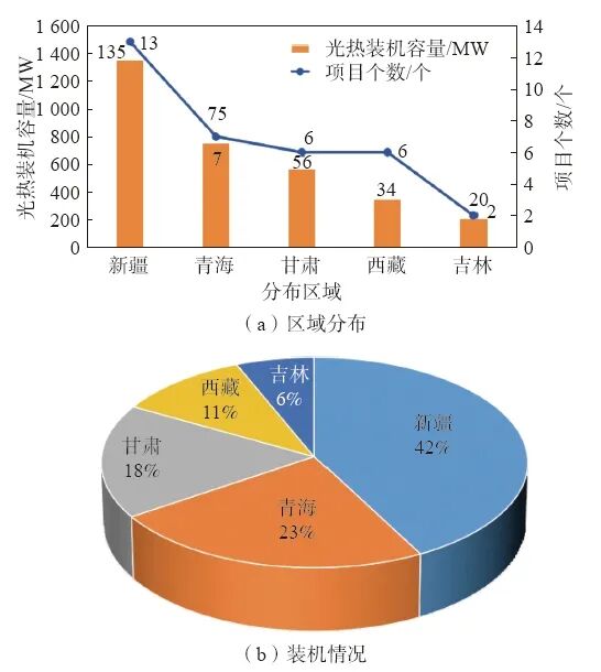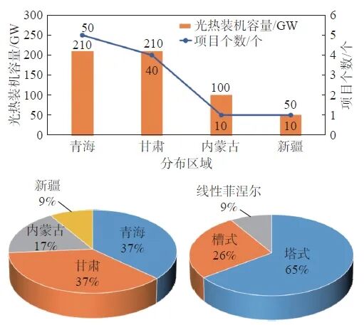 ↑ 中國(guó)當(dāng)前在建/擬開(kāi)發(fā)的光熱項(xiàng)目(按地域劃分)