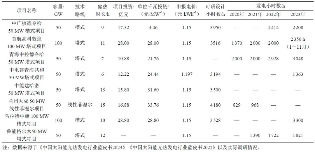 ↑ 2023 年底已建成光熱發(fā)電項(xiàng)目總體情況