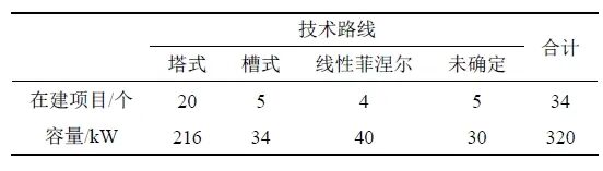 ↑ 中國(guó)當(dāng)前在建/擬開(kāi)發(fā)的光熱項(xiàng)目(按技術(shù)路線)