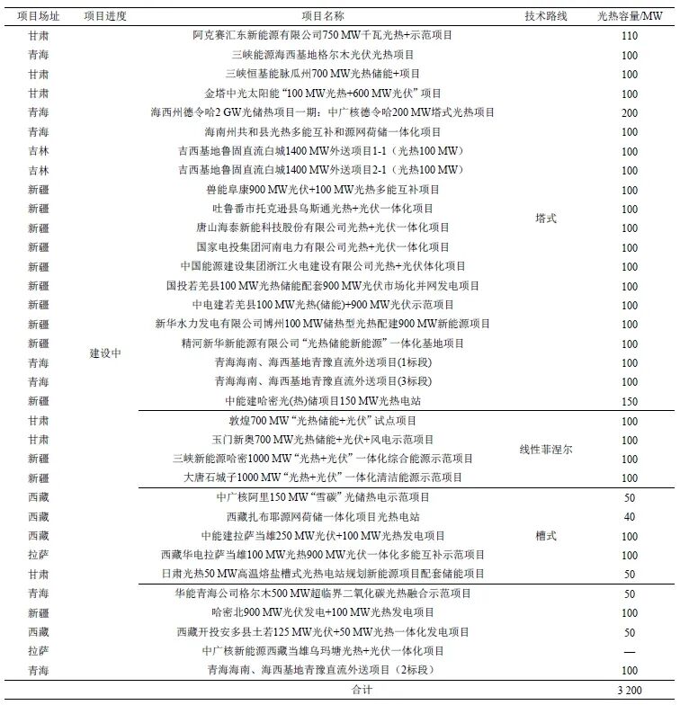 中國(guó)當(dāng)前在建/擬開(kāi)發(fā)的光熱項(xiàng)目