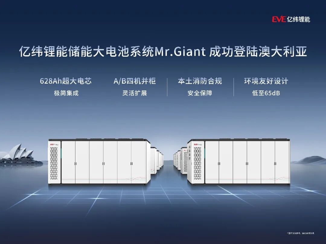 針對這一趨勢,億緯鋰能推出Mr.Giant儲能系統(tǒng),采用628Ah儲能大電池與高度集成化架構(gòu),適用于可再生能源并網(wǎng)、削峰填谷、電網(wǎng)調(diào)頻等多種場景,助力澳洲能源結(jié)構(gòu)平穩(wěn)轉(zhuǎn)型。