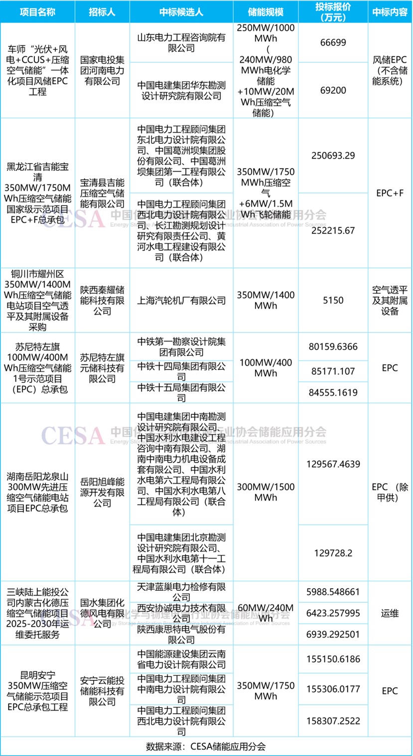 表 2025年1-9月壓縮空氣儲能采招落地項目