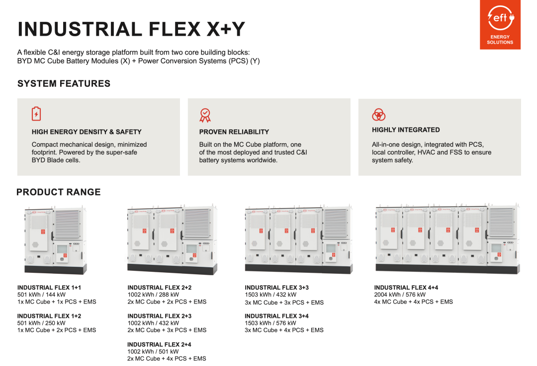 中國儲能網(wǎng)訊:近日,歐洲儲能企業(yè)EFT Energy Solutions近日正式發(fā)布其面向工商業(yè)儲能市場的全新解決方案——Industrial Flex。