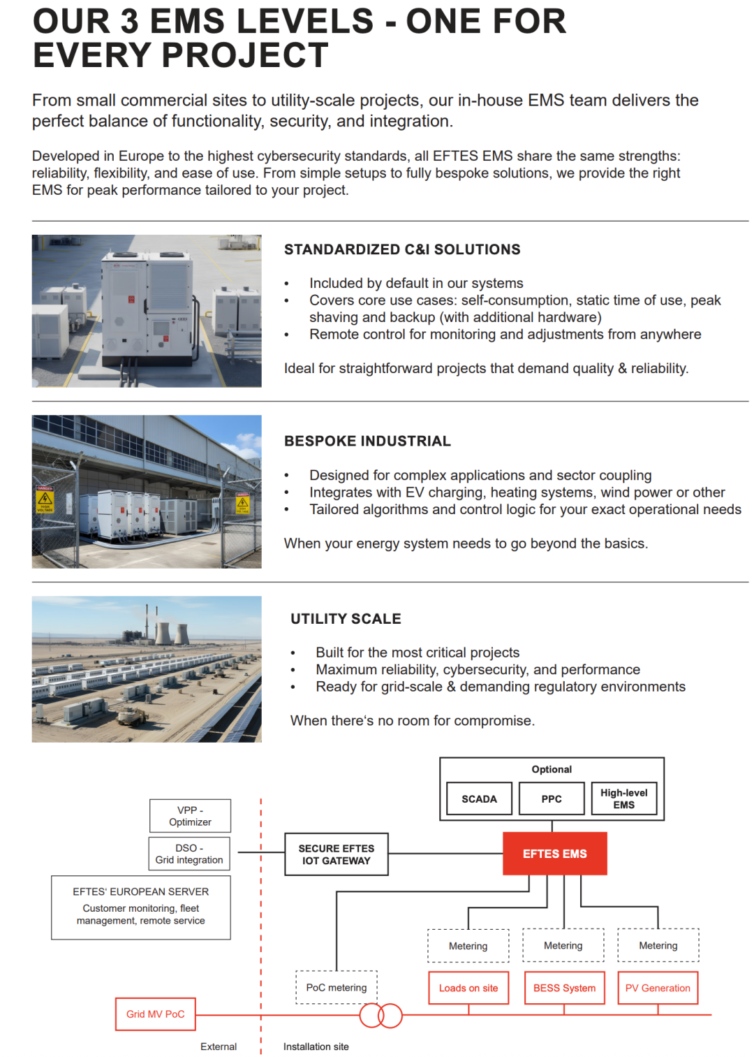 對于更復(fù)雜的跨領(lǐng)域應(yīng)用,例如電動汽車充電、光熱或風(fēng)儲混合、熱泵與工業(yè)鍋爐耦合,EFT還提供定制化EMS邏輯與接口適配。既可單體運行,也可融入多能管理平臺。