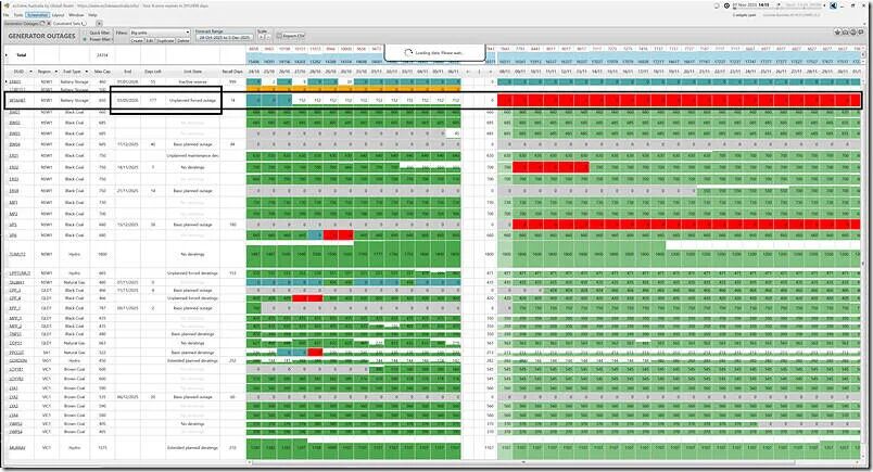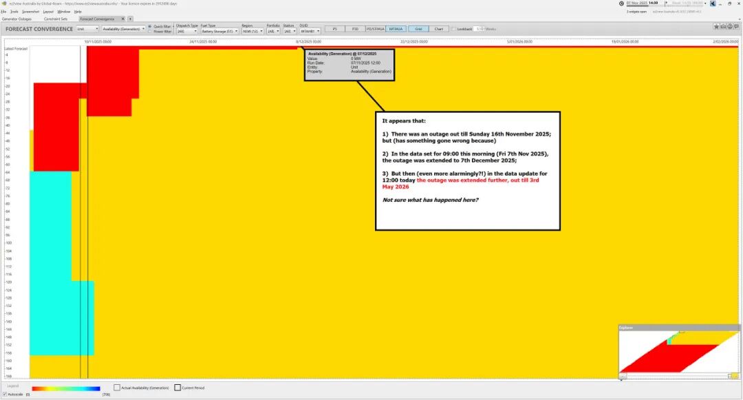 但是(也許昨晚發(fā)生了什么事?)因為在今天早上(即2025年11月7日星期四 09:00 NEM時間)的數(shù)據(jù)更新中,停運時間被延長了。