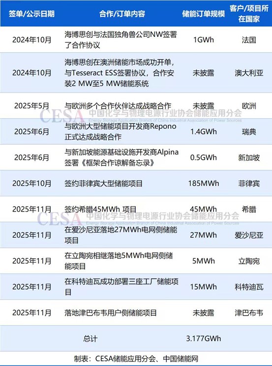 同時(shí),海博思創(chuàng)的增長(zhǎng)戰(zhàn)略不僅依賴于國(guó)內(nèi)市場(chǎng),其海外市場(chǎng)擴(kuò)張同樣迅猛。數(shù)據(jù)顯示,2024年10月以來,海博思創(chuàng)先后斬獲海外儲(chǔ)能訂單/合作超3GWh。