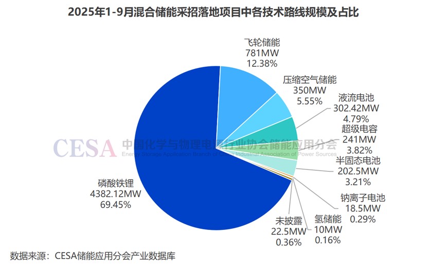 據(jù)CESA儲能應(yīng)用分會產(chǎn)業(yè)數(shù)據(jù)庫不完全統(tǒng)計,2025年1-9月國內(nèi)混合儲能新增裝機3.8GW/9.46GWh,功率規(guī)模占比11.7%。