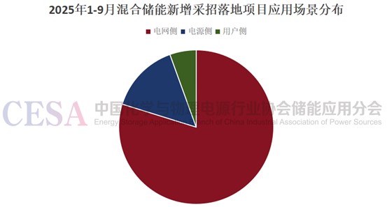具體到應(yīng)用場景,2025年1月到9月的混合儲能招投標(biāo)項目中,電網(wǎng)側(cè)項目以87項的規(guī)模占據(jù)領(lǐng)先優(yōu)勢,占比超過80%。該場景主要應(yīng)對電網(wǎng)調(diào)峰調(diào)頻、輸配電擴容以及新能源消納優(yōu)化等復(fù)雜需求,與混合儲能的應(yīng)用優(yōu)勢完美契合。