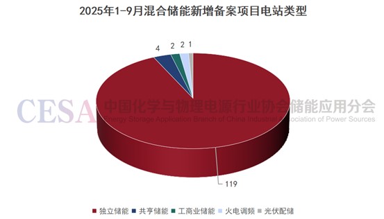 從電站類型來看,在1月到9月新增備案的混合儲能項目中,獨立儲能以119項的數(shù)據(jù)優(yōu)勢占據(jù)主導(dǎo)地位,成為推動混合儲能規(guī)模化發(fā)展的核心力量。這表明市場高度認(rèn)可獨立儲能技術(shù)的成熟度和經(jīng)濟性,也體現(xiàn)了其在電網(wǎng)調(diào)峰、新能源消納等場景中不可替代的作用。