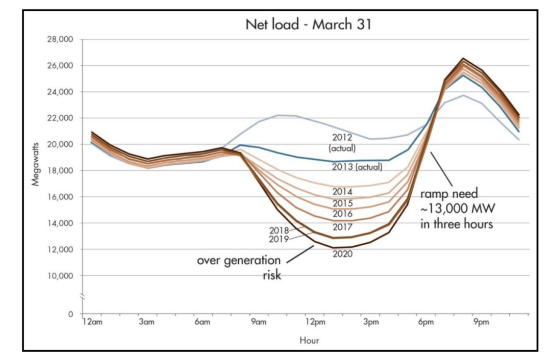 美國加利福尼亞州獨立系統(tǒng)運營商(CAISO)于2014年提交的靈活性充裕度資源要求修正案,是“鴨子曲線”現(xiàn)象被廣泛關(guān)注的起點。