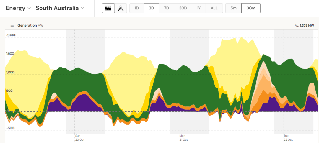 澳大利亞國家電力市場(NEM)2024年10月12日13:00 屋頂光伏首次超過需求50%,上一次令人印象深刻的記錄則是由南澳州于2023年12月31日13:30創(chuàng)下的網(wǎng)供負荷小于零。