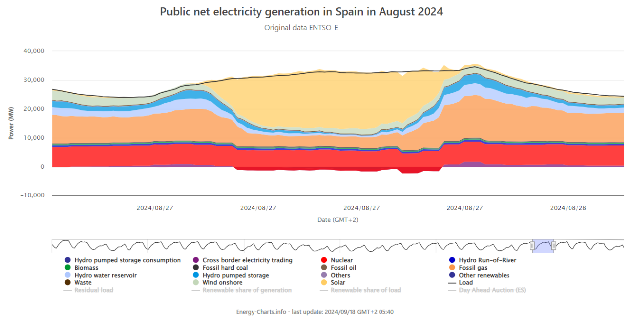 圖8:西班牙市場與CAISO市場典型日的發(fā)電組合出力情況對比
