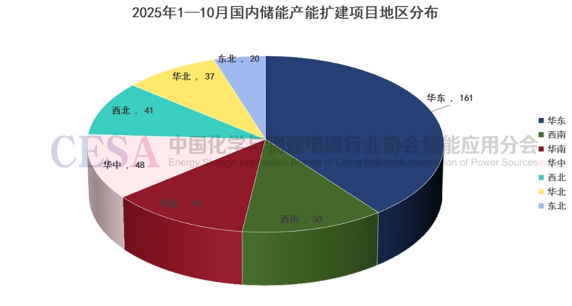談到儲能產(chǎn)能擴(kuò)建項目的地域分布,華東地區(qū)無疑是當(dāng)仁不讓的領(lǐng)頭羊,以161個項目幾乎占據(jù)了全國總量的半壁江山。這背后,長三角經(jīng)濟(jì)圈完善的產(chǎn)業(yè)配套和政策先行優(yōu)勢功不可沒。緊隨其后的是西南地區(qū),擁有50個項目,這主要得益于四川、云南等地豐富的水電資源以及新能源基地建設(shè)的旺盛需求。