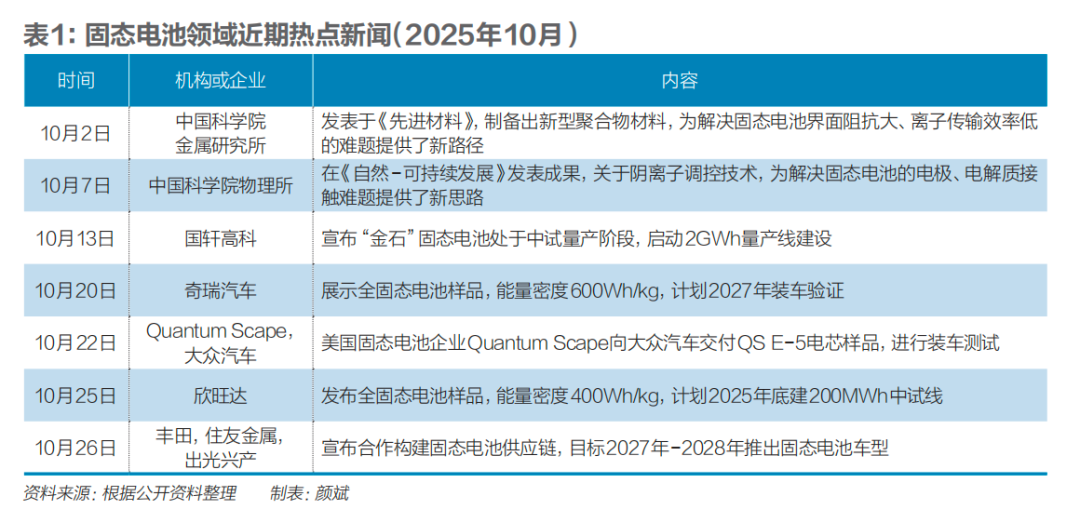 規(guī)范命名也是為當(dāng)前火熱的市場(chǎng)情緒降溫。今年以來,固態(tài)電池領(lǐng)域的技術(shù)突破、樣品發(fā)布和新進(jìn)展披露接連不斷,將市場(chǎng)熱度推向新的高度。2025年10月,有關(guān)固態(tài)電池的重大新聞?lì)l繁見諸報(bào)端。