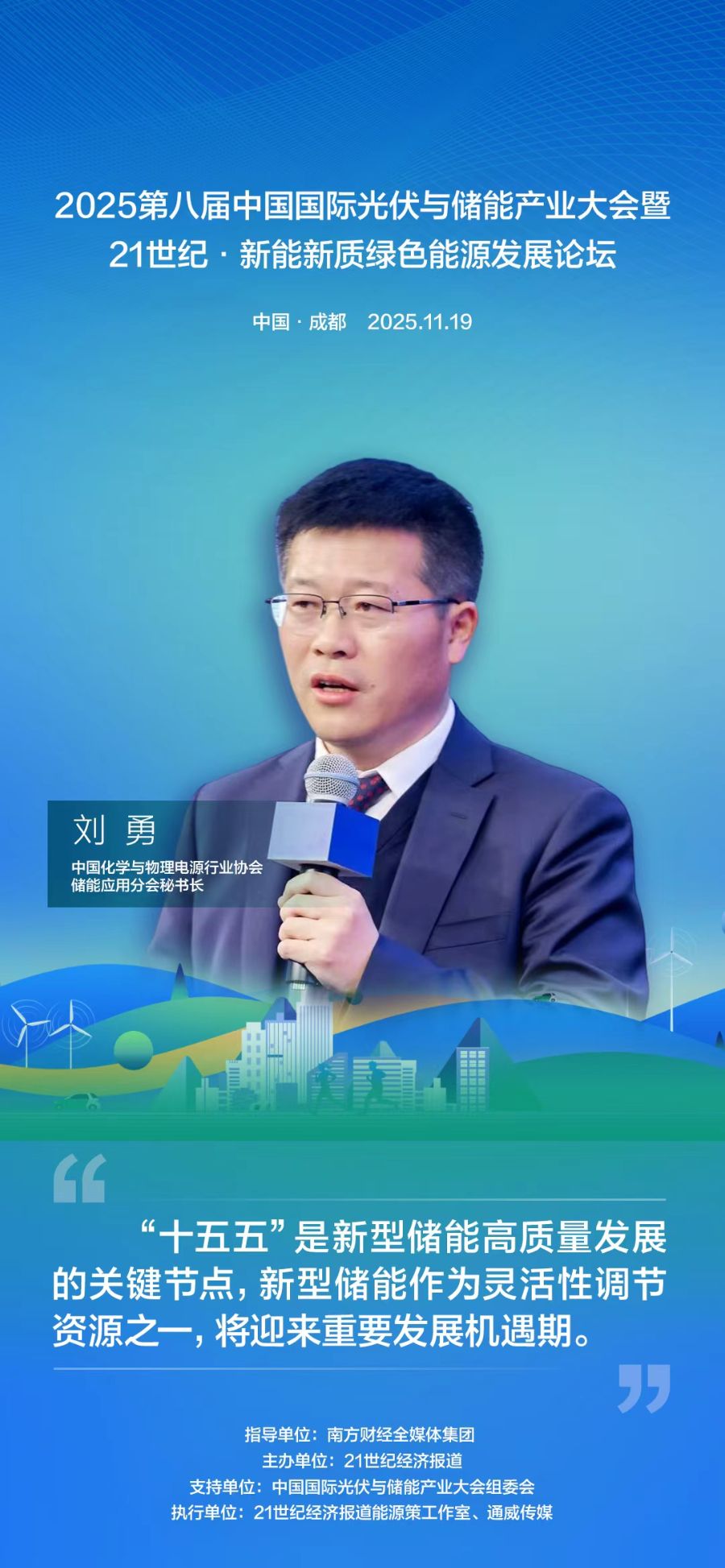 中國儲能網(wǎng)訊:11月19日下午,由南方財(cái)經(jīng)全媒體集團(tuán)指導(dǎo)、21世紀(jì)經(jīng)濟(jì)報(bào)道主辦、中國國際光伏與儲能產(chǎn)業(yè)大會組委會支持的2025第八屆中國國際光伏與儲能產(chǎn)業(yè)大會暨21世紀(jì)·新能新質(zhì)綠色能源發(fā)展論壇在四川成都舉行。