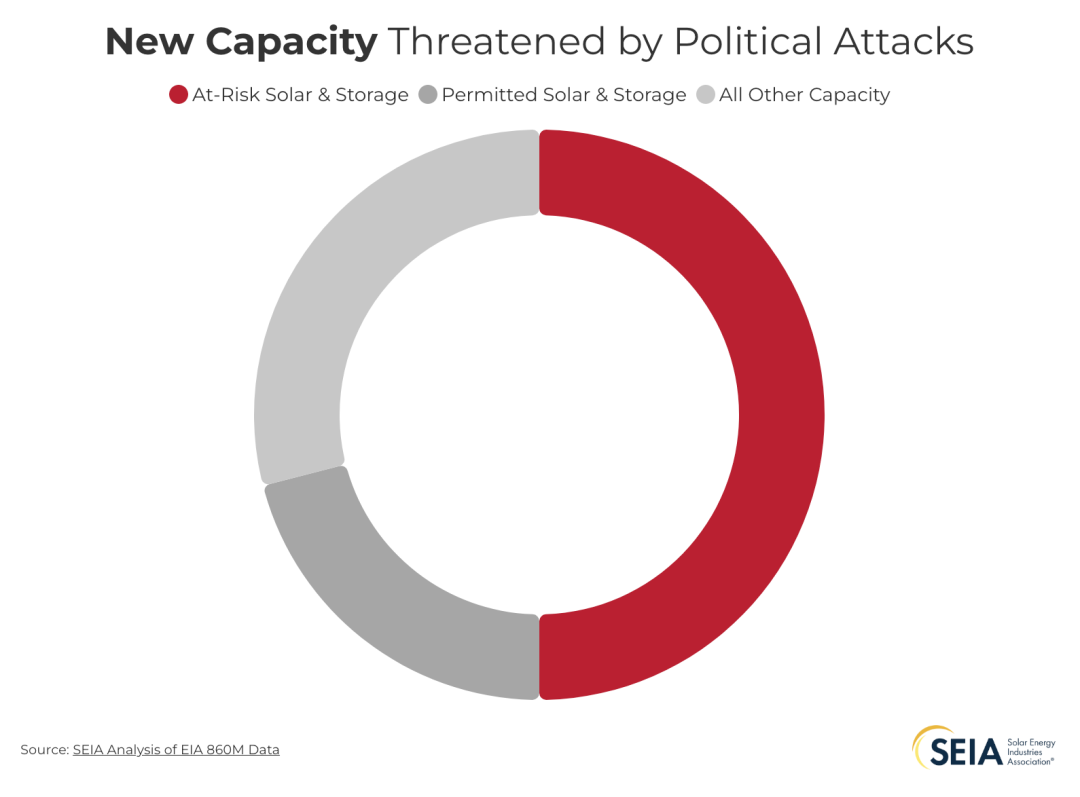 內(nèi)政部要求部長(zhǎng)本人簽署多類項(xiàng)目審批,財(cái)政部又重新定義“開工”標(biāo)準(zhǔn),使不少項(xiàng)目無法獲得稅收抵免。SEIA稱,這種“審批封鎖”已在全美44個(gè)州蔓延,波及73GW光伏與43GW儲(chǔ)能項(xiàng)目,理論上足以為1600萬戶家庭供電。