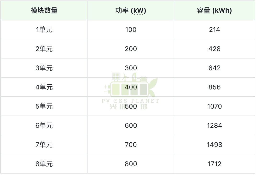 此外,配置靈活,可根據(jù)需求擴(kuò)展,比如單體可配置起始容量214kWh,亦可擴(kuò)展至428kWh、642kWh等。