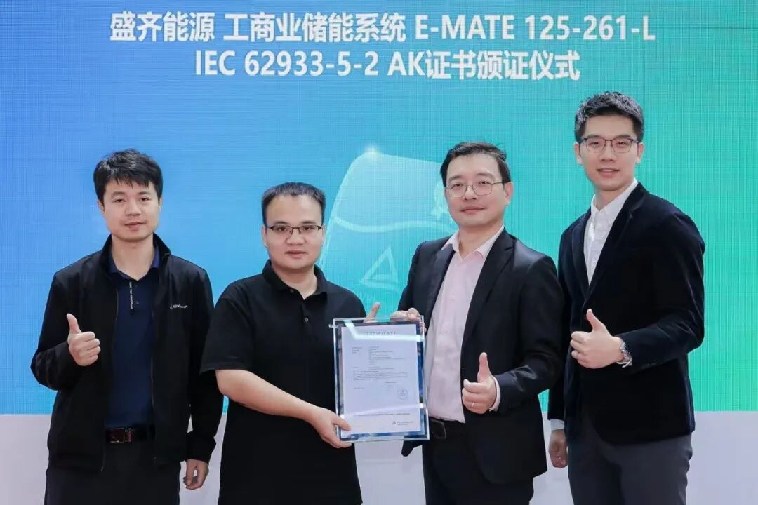 中國儲能網(wǎng)訊:近日,國際權威認證機構 TüV 萊茵(TüV Rheinland)正式向盛齊能源頒發(fā)符合性證書(AK 證書)。盛齊能源液冷工商業(yè)儲能系統(tǒng) E-MATE 125-261-L 順利通過 IEC 62933-5-2 國際儲能安全標準測試。這一認證標志著該產(chǎn)品的安全性能與系統(tǒng)可靠性達到國際權威標準,也彰顯了盛齊能源在工商業(yè)儲能領域的技術硬實力。