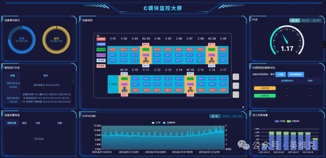 四川某制造業(yè)公司數字化項目應用英維克AI溫控節(jié)能方案-C模塊監(jiān)控大屏