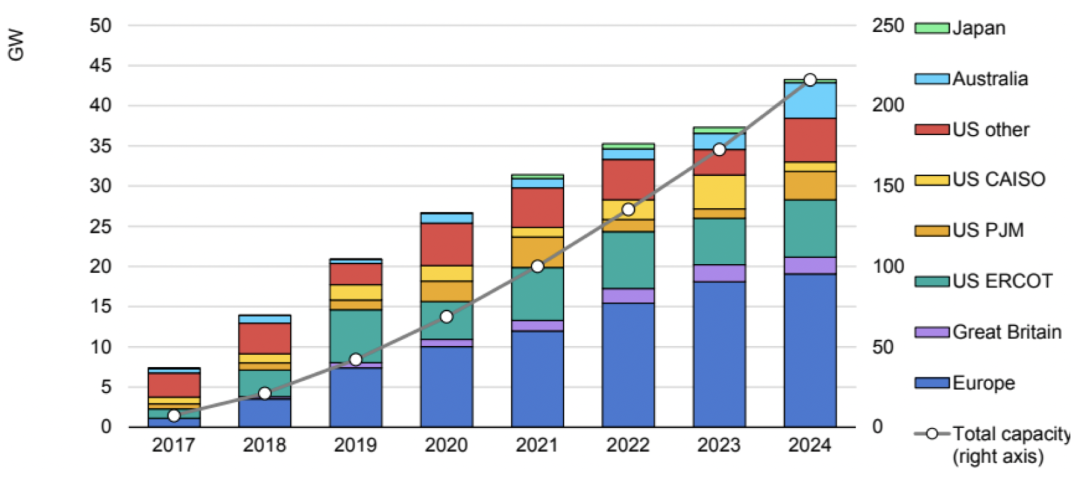 日本:東西部電網(wǎng)頻率差異(50Hz/60Hz)限制互聯(lián),需通過市場整合提升靈活性。2025年容量拍賣首次納入儲能,規(guī)模達(dá)166.2GW。