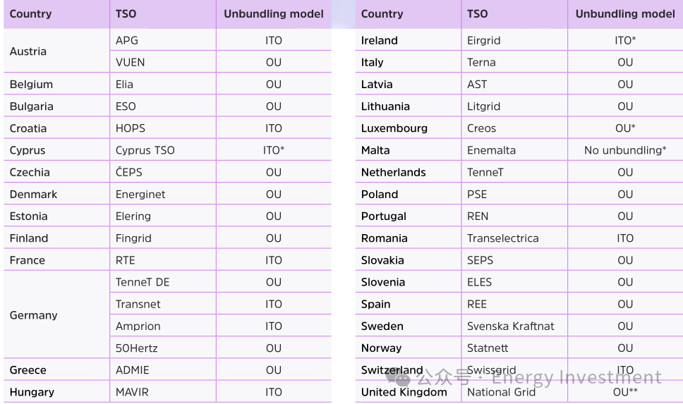 獨(dú)立輸電系統(tǒng)運(yùn)營(yíng)商(ITO):能源供應(yīng)公司仍可能擁有和運(yùn)營(yíng)燃?xì)饣螂娏W(wǎng)絡(luò),但必須通過(guò)子公司進(jìn)行。所有重要決策必須獨(dú)立于母公司進(jìn)行。