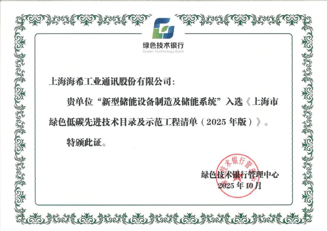 本次技術(shù)目錄征集由上海市發(fā)展改革委、市科委、市經(jīng)濟信息化委等六部門聯(lián)合組織,經(jīng)多輪嚴格評審最終確定入選名單,旨在推廣一批具備先進性、創(chuàng)新性與應用價值的綠色技術(shù),為城市低碳發(fā)展提供支撐。海希通訊的儲能系統(tǒng)憑借高安全性、智能化管理及多場景適配能力脫穎而出,成為儲能領(lǐng)域的重點推薦成果。