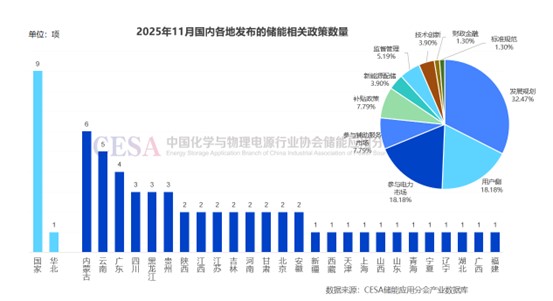 中國(guó)儲(chǔ)能網(wǎng)訊:據(jù)CESA儲(chǔ)能應(yīng)用分會(huì)產(chǎn)業(yè)數(shù)據(jù)庫(kù)不完全統(tǒng)計(jì),2025年11月份共發(fā)布儲(chǔ)能相關(guān)政策77項(xiàng),國(guó)家層面發(fā)布9項(xiàng),涉及發(fā)展規(guī)劃、監(jiān)督管理、技術(shù)創(chuàng)新、標(biāo)準(zhǔn)規(guī)范等多個(gè)方面。