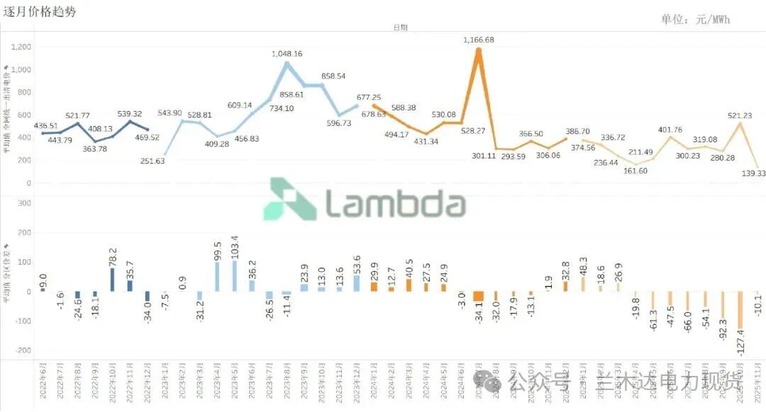 供需失衡導致現(xiàn)貨價格持續(xù)波動。2024年7月,現(xiàn)貨價格高達1166.68元/兆瓦時,成為現(xiàn)貨市場啟動以來最高現(xiàn)貨價格;而2025年4月則出現(xiàn)歷史最低價格161.6元/兆瓦時。